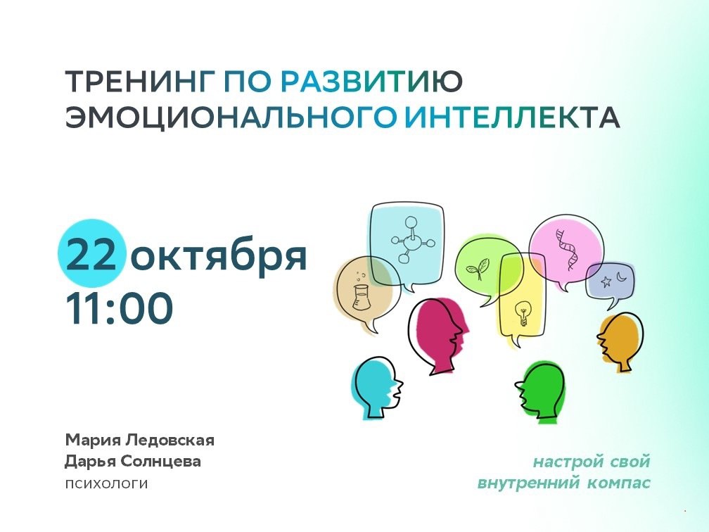 Приглашаем на тренинг по развитию эмоционального интеллекта от ведущих психологов Самарского дома молодёжи Марии Ледовской и Дарьи Солнцевой.