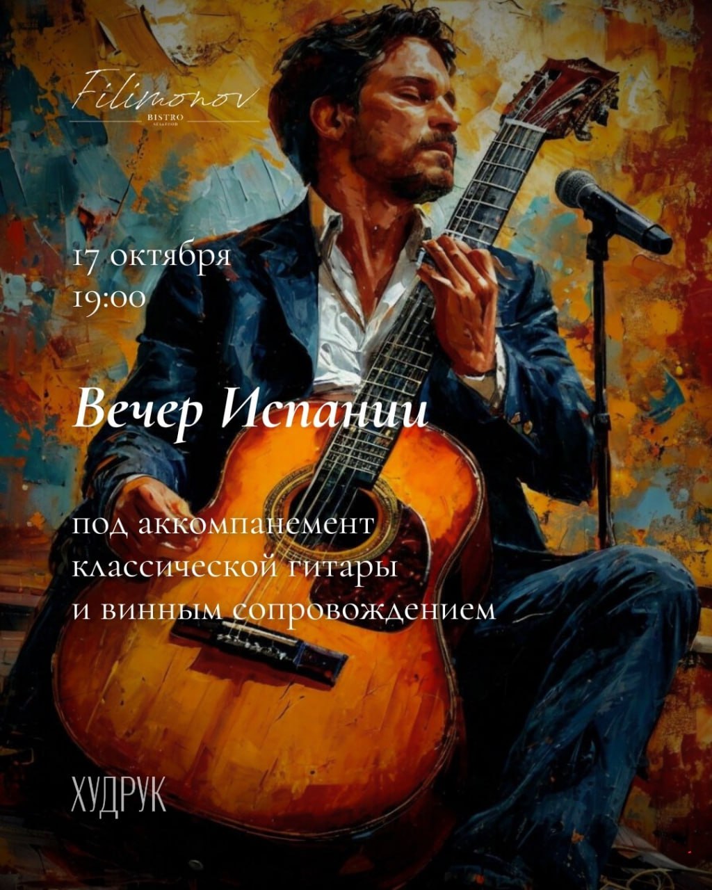 Filimonov Bistro приглашает гостей 17 октября на музыкальный вечер, где гитара оживит душу Испании, а яркие вкусы раскроют ее характер!