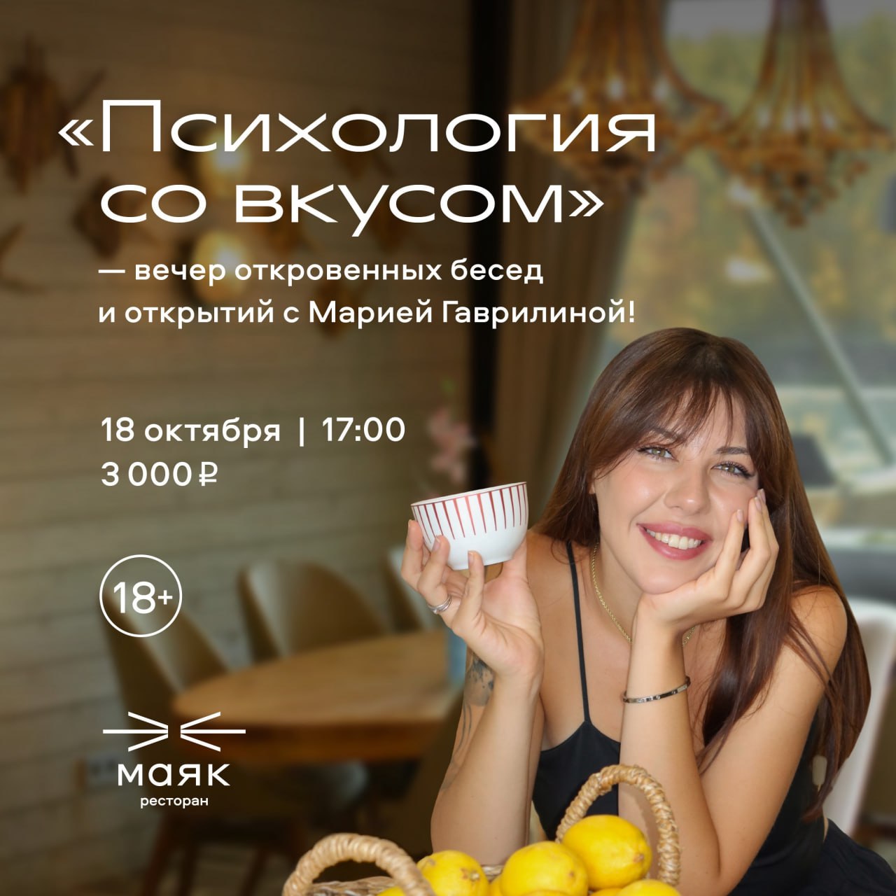 Это будет не лекция, а тёплый и искренний разговор о женщинах, о том, как не терять себя в любви и жизни.