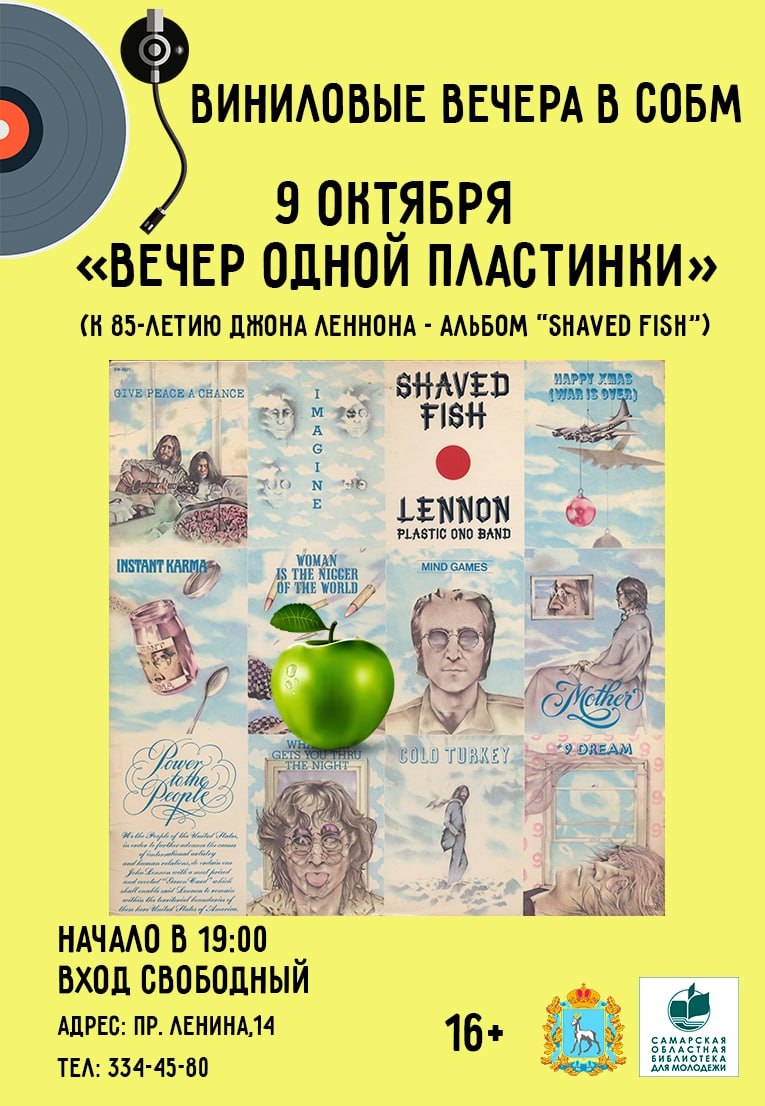 Вместе с автором и ведущим единственного в области оригинального винилового события, к.и.н. Артёмом Доценко будем целиком слушать альбом Леннона «Shaved Fish», вышедший 50 лет назад, в октябре 1975 года, с оригинального японского издания!