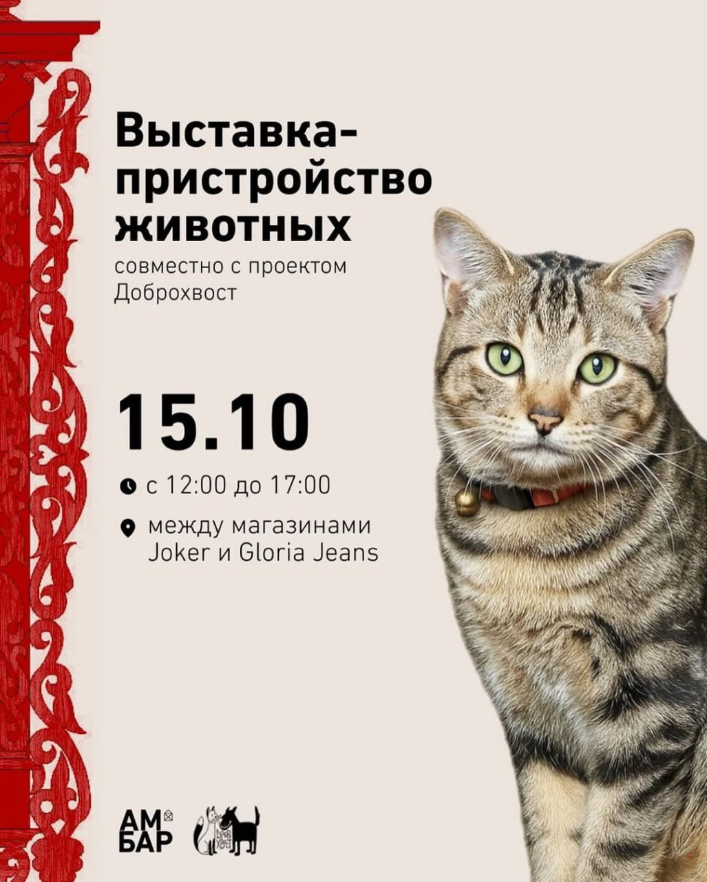 15 октября с 12:00 до 17:00 в ТК «Амбар», в зоне между Joker и Gloria Jeans, вас будут ждать пушистики, которым очень нужен дом.