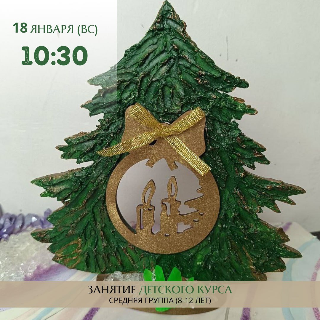 8-12 лет. Роспись новогодней елки на подставке. Стоимость 900₽.