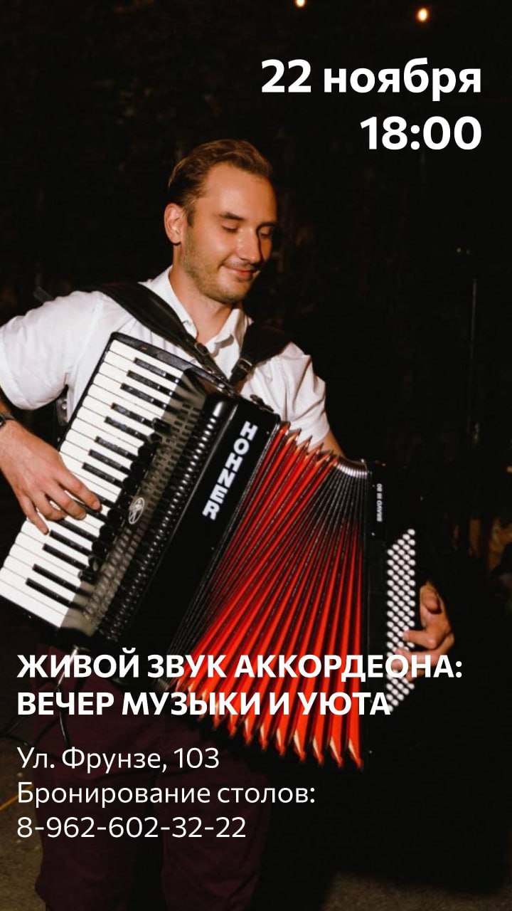 Приглашаем вас в эту субботу, 22 ноября, с 18:00 на незабываемый вечер живой музыки!